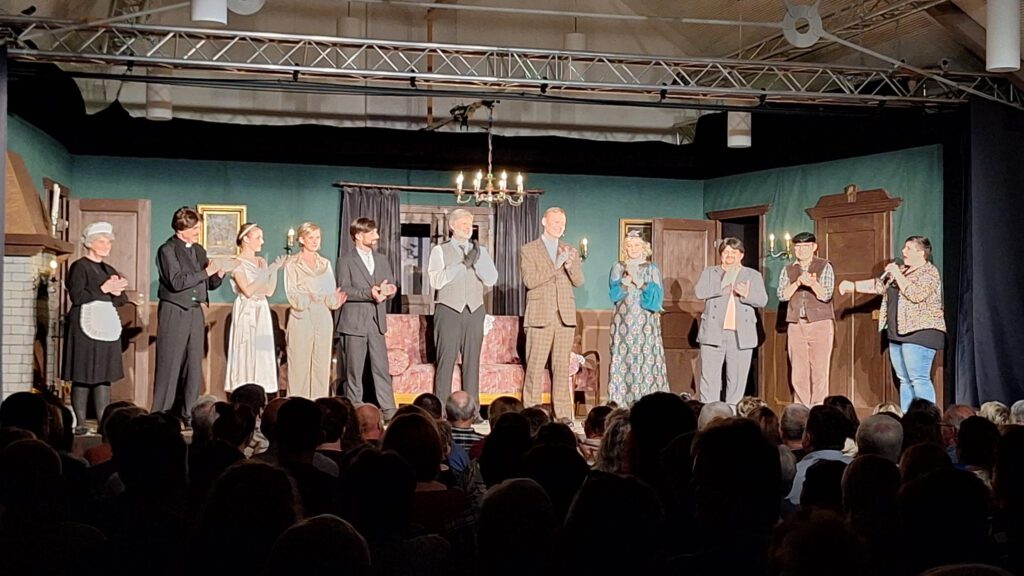 Eine ganz eigene Herausforderung wartete jedoch im Textbuch: Die gehobene Ausdrucksweise und das strikte Hochdeutsch der englischen Society. In den Proben rauchten die Köpfe, und wenn in der Hitze des Gefechts doch einmal ein spontaner Ausspruch „auf Fränkisch“ über die Lippen kam, sorgte das nicht nur für Lacher im Team, sondern verlieh dem Stück auf der Bühne einen ganz eigenen, unverwechselbaren Charme. Unsere Herkunft können und wollen wir eben nicht verschleiern – und genau das machte die Inszenierung so authentisch. Unsere Spieler gaben 100 % und wir sind so stolz auf die Leistung, die jeder Einzelne bei den sieben Aufführungen gebracht haben. Alle haben auf der Bühne vollen Einsatz gegeben und das spürte jeder, der bei einer der Auftritte von uns war..